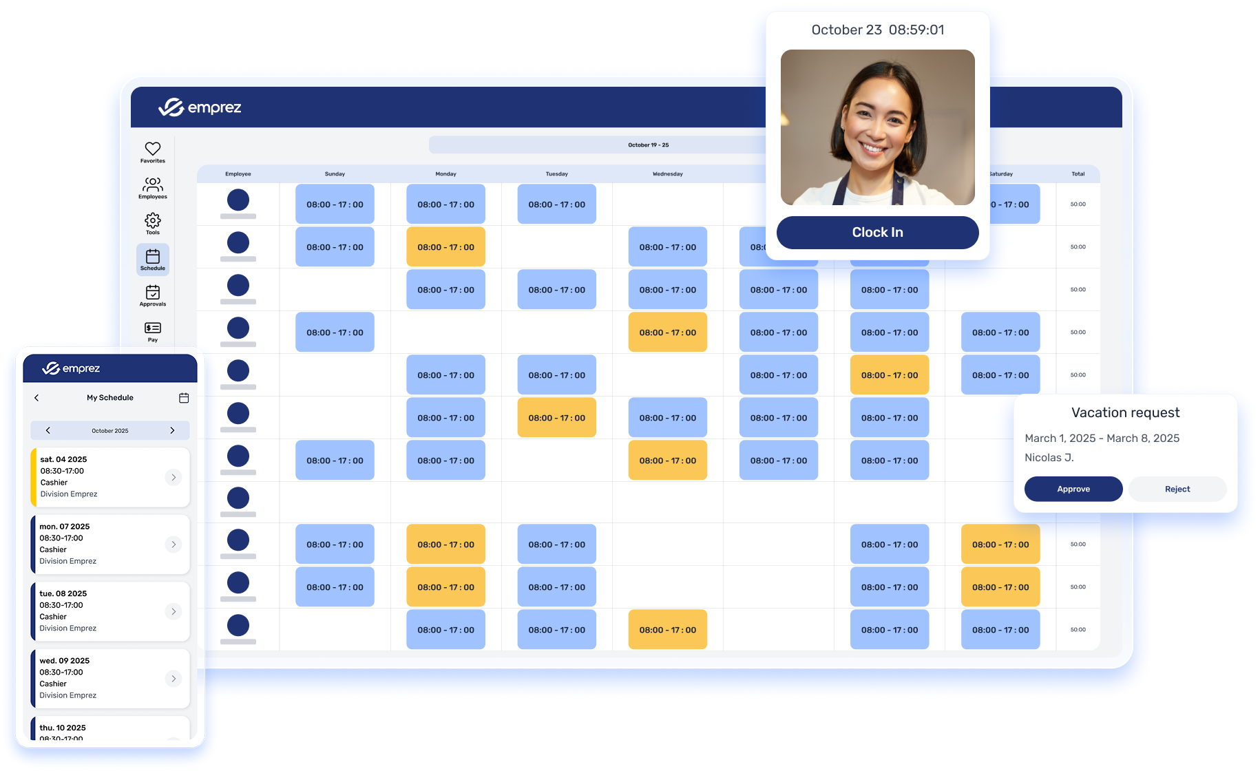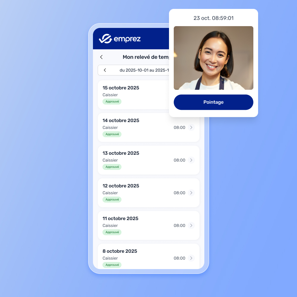 Emprez provides workforce time and attendance software that helps you easily create schedules, track employee hours, and automate payroll while reducing HR chaos.